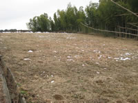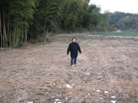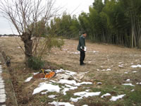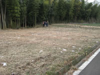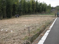 が残っている農地の外れに桜の木があった 中央の杭より北側が予定の農地 農地の西側は竹薮